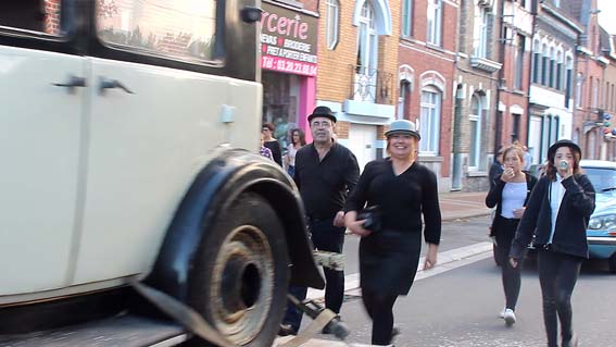 Les confettis étaient bien entendu au rendez-vous, faut dire qu’on avait fait le plein. On en a d’ailleurs encore assez pour la prochaine édition ! Et pour la première fois, étant en tête du cortège, on a pu progresser sur un parcours vierge de confettis… Hélas, nos poursuivants n’ont pas eu l’occasion d’en dire autant ! Après nous, non pas le déluge, mais un tapis de petits pois blancs digne des meilleures années des Tisserands ! Je tire mon chapeau aux quelques conducteurs qui ont réussi à garder leurs intérieurs pratiquement vierges de confettis ; bien sûr, je ne parle pas des cabriolets, et de Cécile, qui a subi quelques attaques carabinées, au volant de l’Ami 8… Faut dire qu’elle nous provoquait, nous les piétons, depuis un moment et puisqu’après tout ce n’est pas SA voiture… …Il a du être content notre Bernard !
