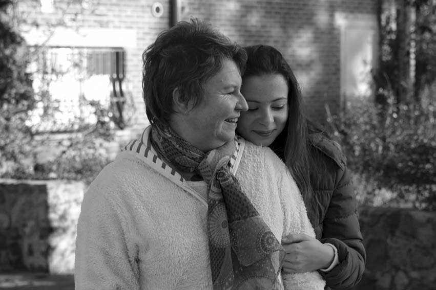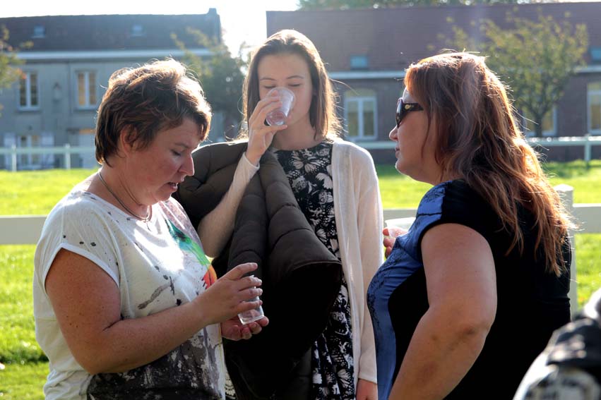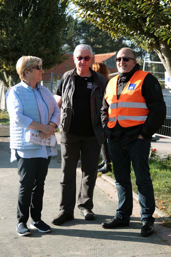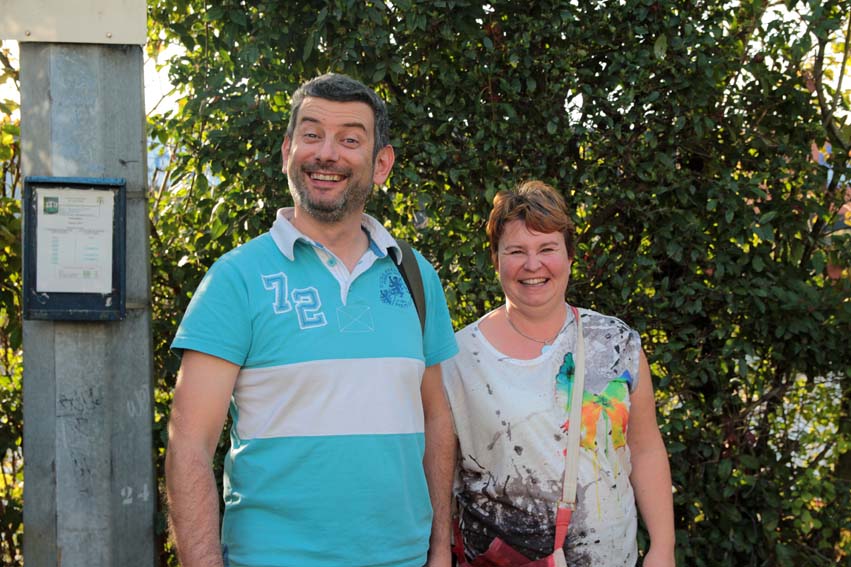 …Après une seconde de panique, nous voyant envahir la rue devant chez lui, Françoise, Noémie et lui, nous ont invité à prendre un verre… …Notre débarquement leur a manifestement fait grand plaisir ! Photo : Ania G.