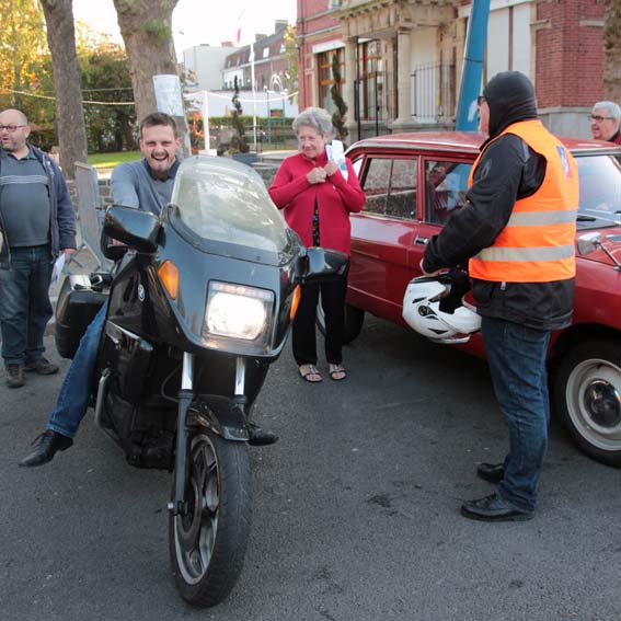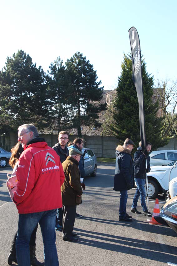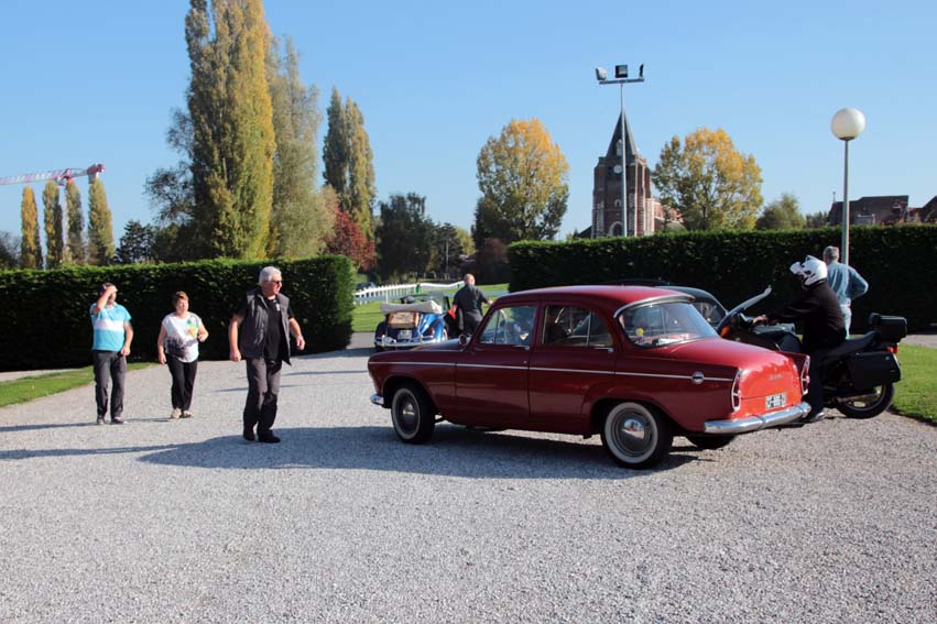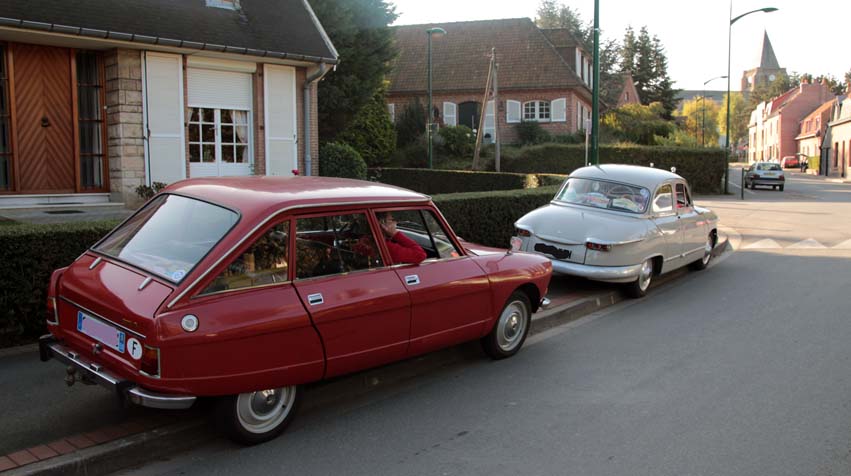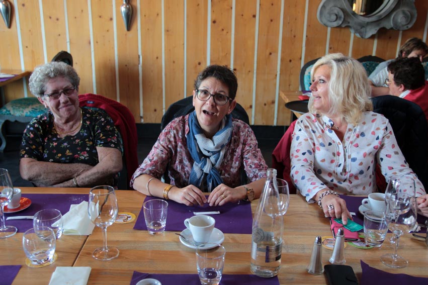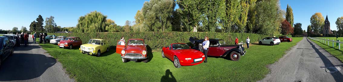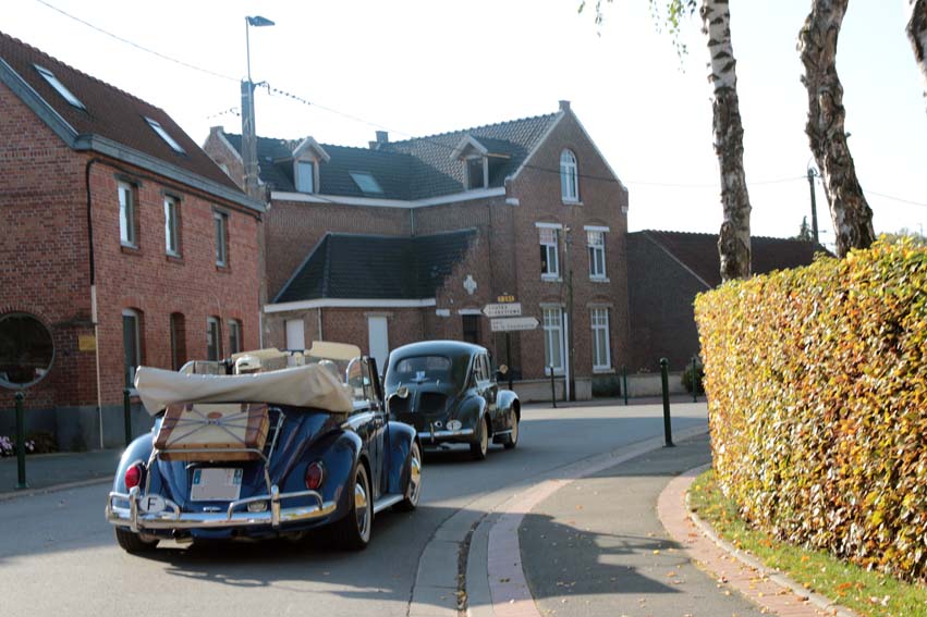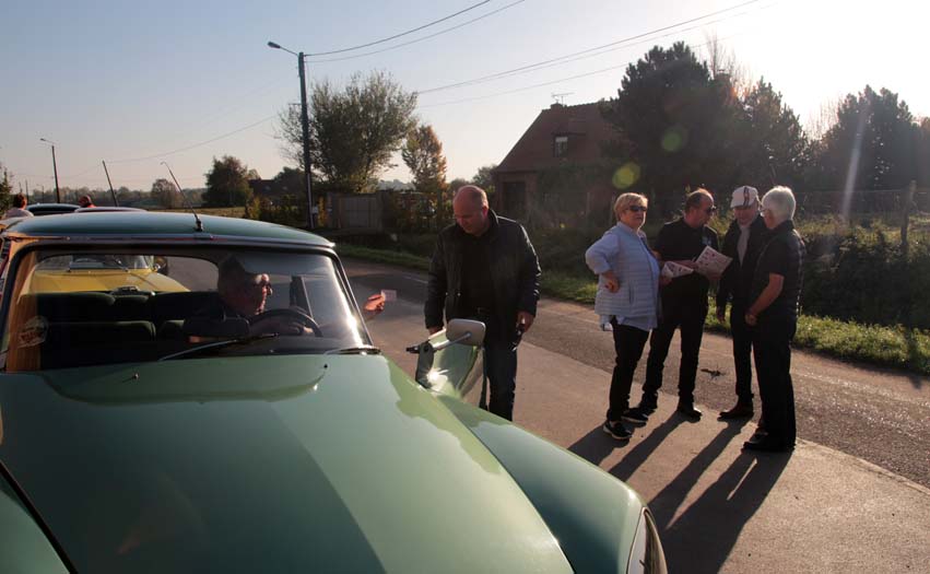 Profitant d’une matinée ensoleillée, Bernadette, Cécile, Corinne, Isabelle et Victoria, José, Nicole et Sylvie se sont donc mises en route. Suivant un petit road book, anciennes et modernes ont roulé tranquillement – quoique les 2CV filèrent les premières – à travers la campagne du Pévèle jusqu’au restaurant la Couturette, rejointes par deux Bernard et deux Jean- .