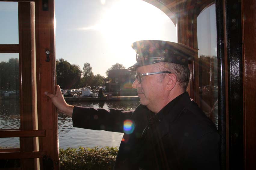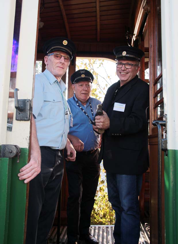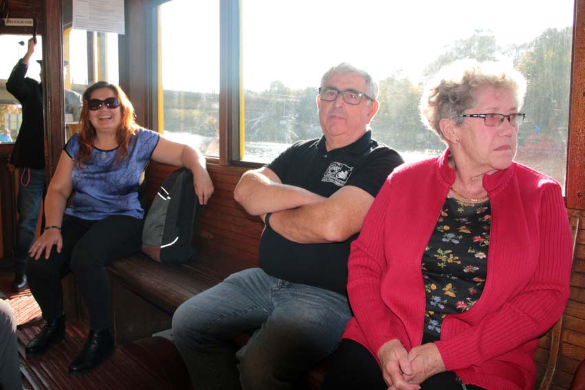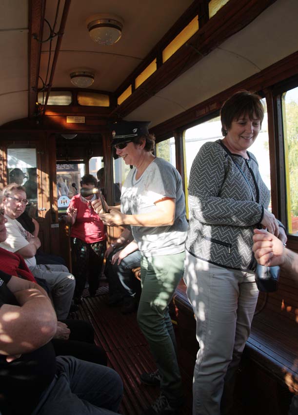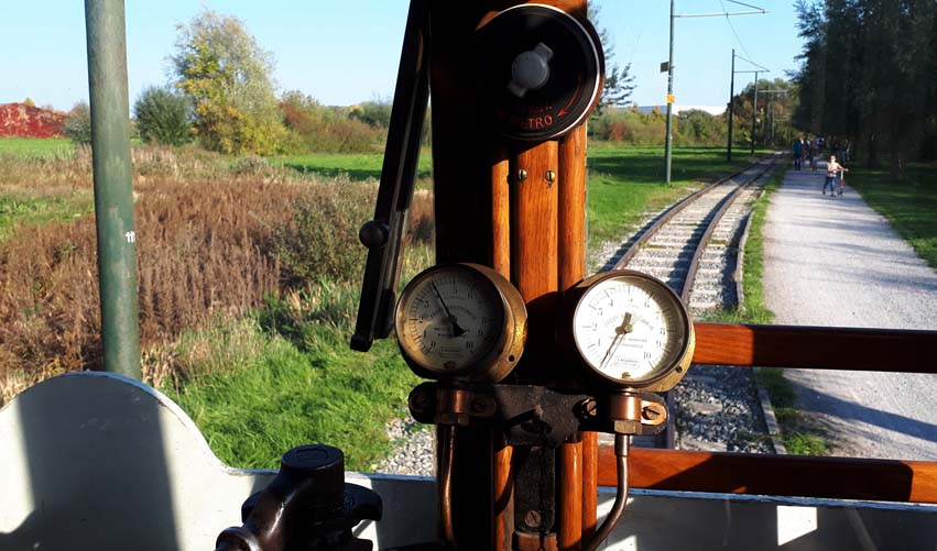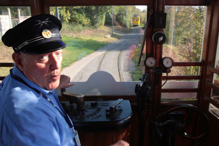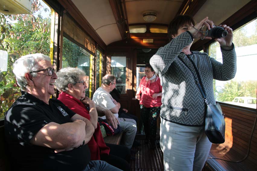 Le voyage, bien que très court, ne fut pas d’un confort inoubliable. Ces vieilles guimbardes, bien que robustes et fiables, ne se déplacent qu’en tremblant et cahotant ça et là, le tout agrémenté d’un bruit incessant de frottements de ferraille et de bois. Mais c’est tant mieux car c’est exactement ce qu’on était venu chercher : du pittoresque, de l’aventure, du rétro, bref du dépaysement ! Et en cela, ce fut très réussi : d’abord, chacun de nous a pu embarquer dans les deux motrices, l’une après l’autre. Nous nous étions séparés en deux groupes, chacun à bord d’une machine et avons permuté au retour. Et nos hôtes avaient joué le jeu jusqu’au bout, arborant de magnifiques et véritables uniformes de machinistes.