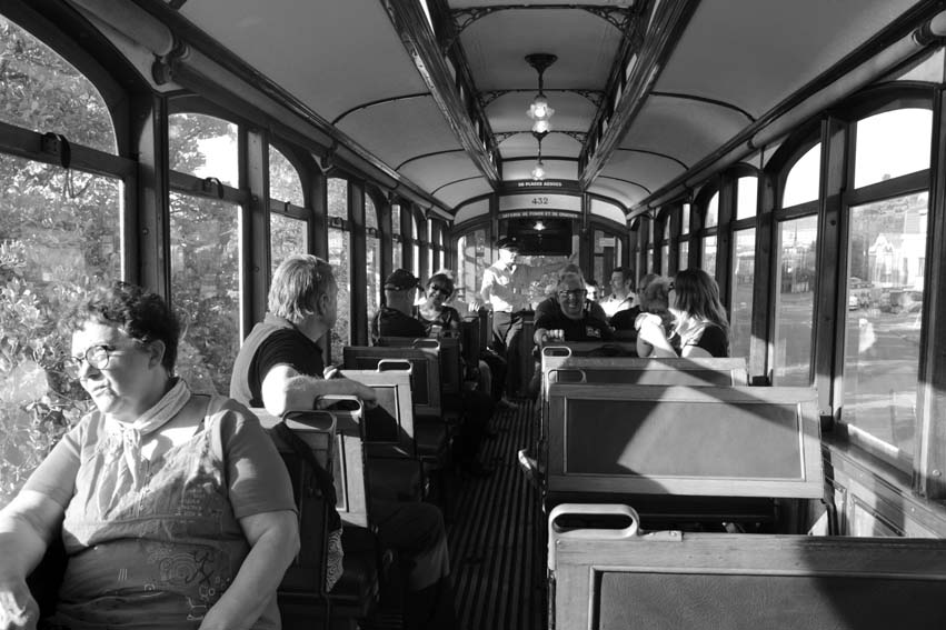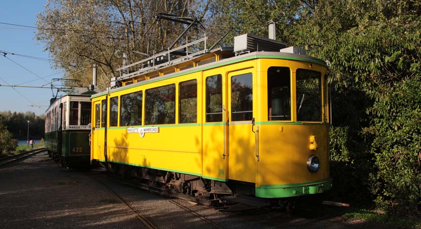 En marge de ce périple, nous avons eu droit également à un résumé historique des tramways mis à notre disposition, ainsi que de celui qui dormait tranquillement dans le hangar et ne sortait pas ce jour-là. Trois machines, donc, de la première moitié du 20ème siècle : un Mongy 420 (qui ne roulait pas), un Mongy 432 de 1926, et une motrice 74 venue de Neuchâtel, en suisse.
