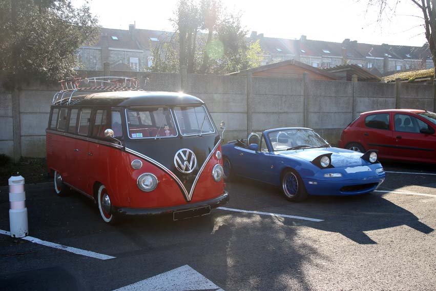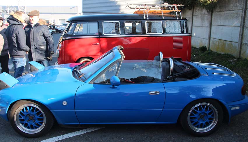 Laurent V s’est pointé au volant d’une magnifique MX-5 toute de bleu vêtue… Après l’image du bricoleur vintage qu’il arborait fièrement au volant de son Acadiane, il a visiblement opté cette fois pour l’image du play-boy sportif, prêt à faire tomber tout c’qui bouge. Quel comédien ! …Non, non, non : c’est un honnête homme ! Il n’a pas profité de son nouveau statut de Trésorier pour s’offrir ce bolide, bande de mauvais penseurs !!!