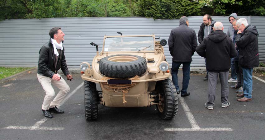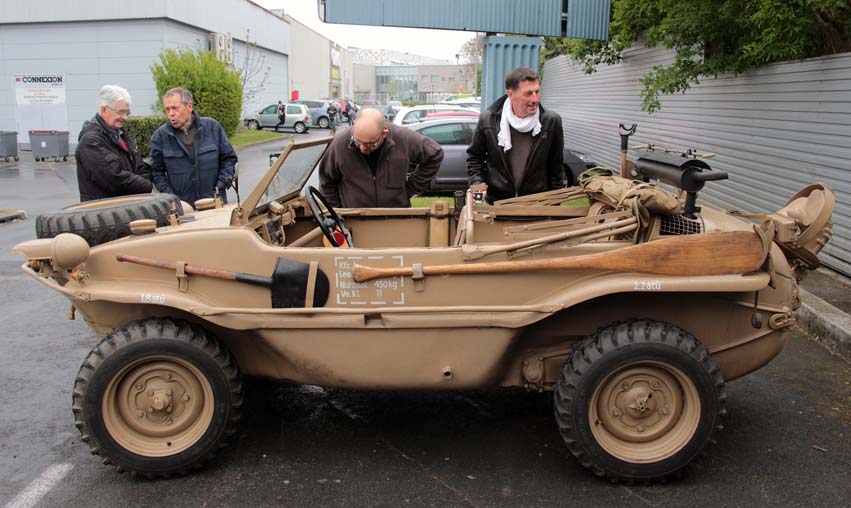 La première était la nouvelle acquisition de notre ami Laurent F, une magnifique ID 19 blanche de 63 et venue tout droit du 28 (Dreux) ! Autant dire qu’elle a suscité quelques jalousies discrètes parmi les fans de DS présents… La seconde, déjà connue des plus anciens d’entre nous : une Schwimmwagen authentique qui était déjà venue lors des expos connexion de jadis. Mais elle a intrigué les membres les plus récents !