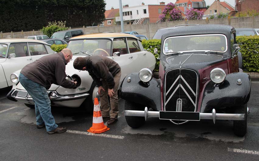 A la sortie du musée, Didier a contacté son assureur pour déclencher les secours de la malade et a décidé de retourner seul, avec Jean-Louis, à son chevet. A leur arrivée sur place, ils ont pu constater que le dépanneur était juste derrière eux. Les autres ont repris la route, direction la métropole lilloise. Après chargement de la Traction et séance photos souvenir avec le dépanneur, la dépanneuse a repris la route, direction le garage de Didier (bonne nouvelle !). Bien entendu, elle a pris le même chemin que nous et, roulant à tombeau ouvert, nous a rapidement rattrapé et dépassé… Quand même : quel énergumène ce Président : voyez de quoi il est capable, juste pour rentrer plus vite à la maison !!!