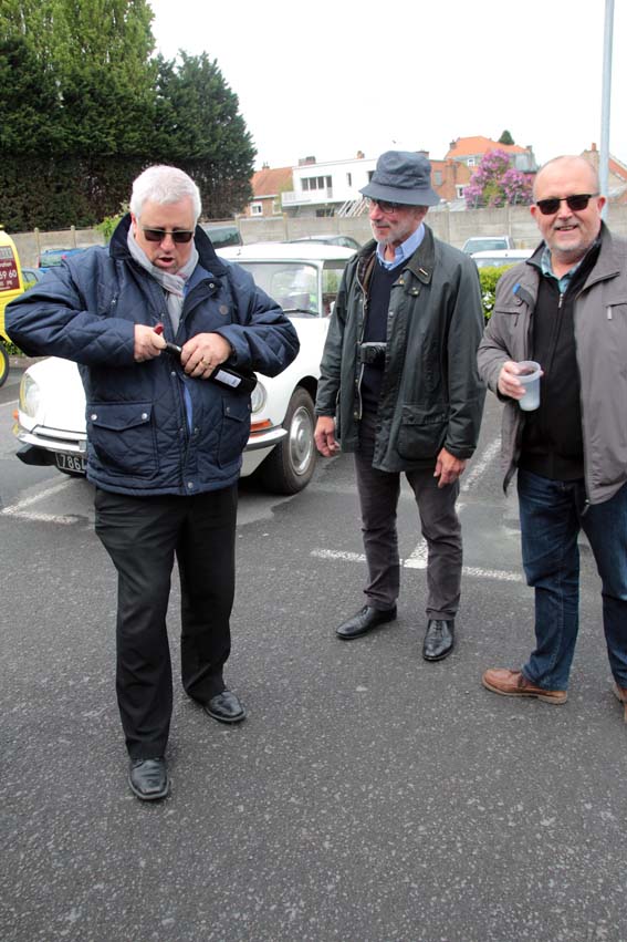 C’est Donovan, Didier et Bernard DAN qui ont préparé le terrain le matin en montant la tente qui allait protéger le bar extérieur prévu par le resto. Des fanions colorés ont été tendus ça et là pour égayer le parking. Y avait plus qu’à attendre les voitures ! Bien entendu, des voitures du club, mais aussi du Rétro Club Hémois, notre fidèle partenaire, et d’autres comme notamment celui de Bondues. Cinq minutes avant le coup d’envoi, personne (ce qui a inquiété passablement notre Président), mais finalement, petit à petit, elles sont arrivées les unes après les autres.